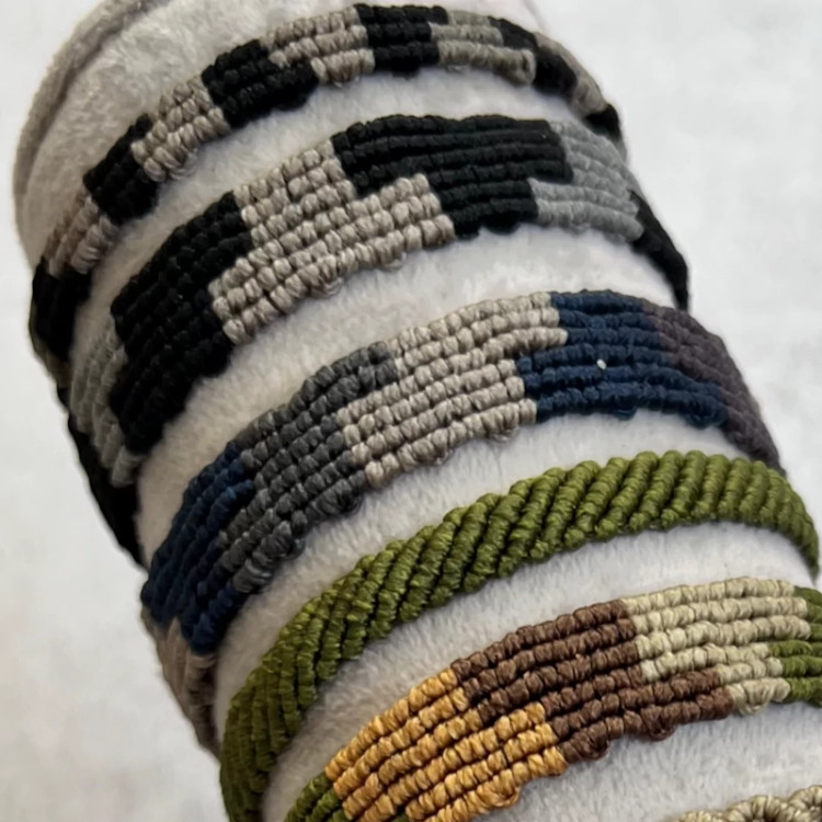 در این مدل دستبند چند رنگ مختلف کنار هم بافته میشن و یک ترکیب منظم و هنری میسازن که هم سادهست و هم خاص.
