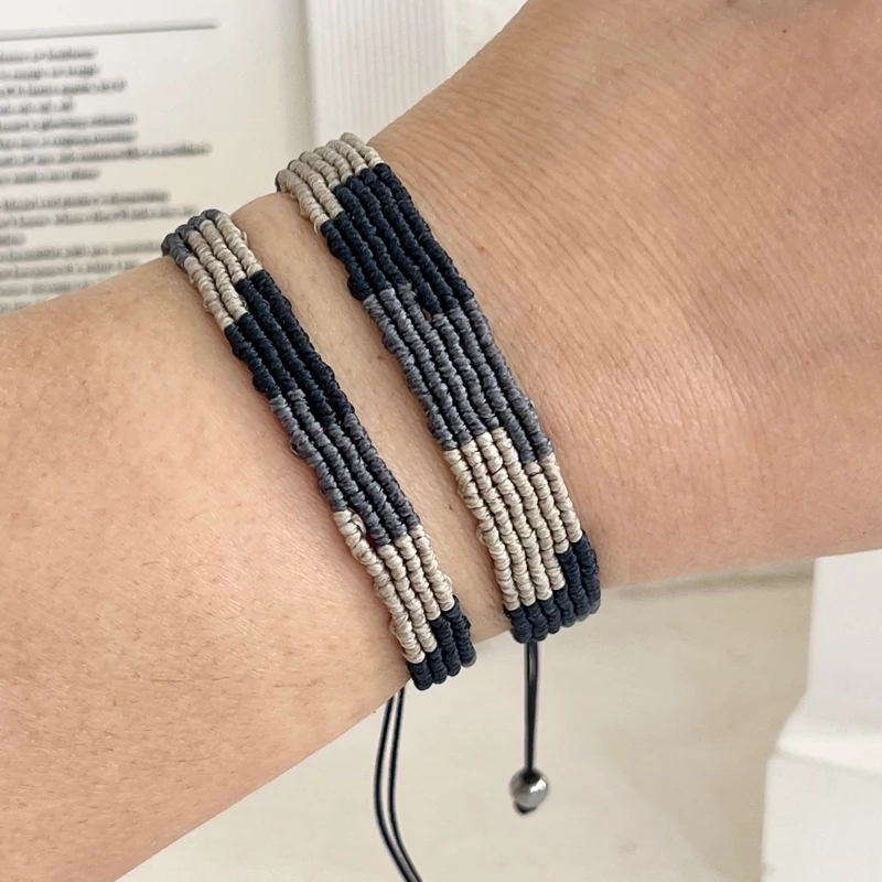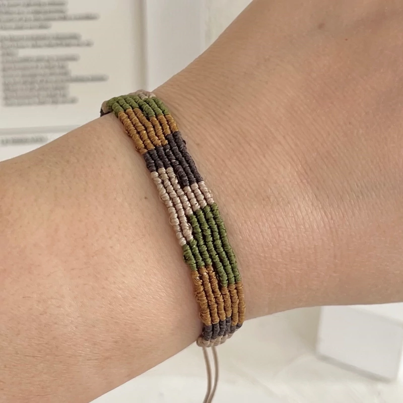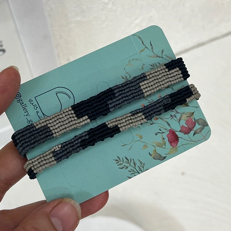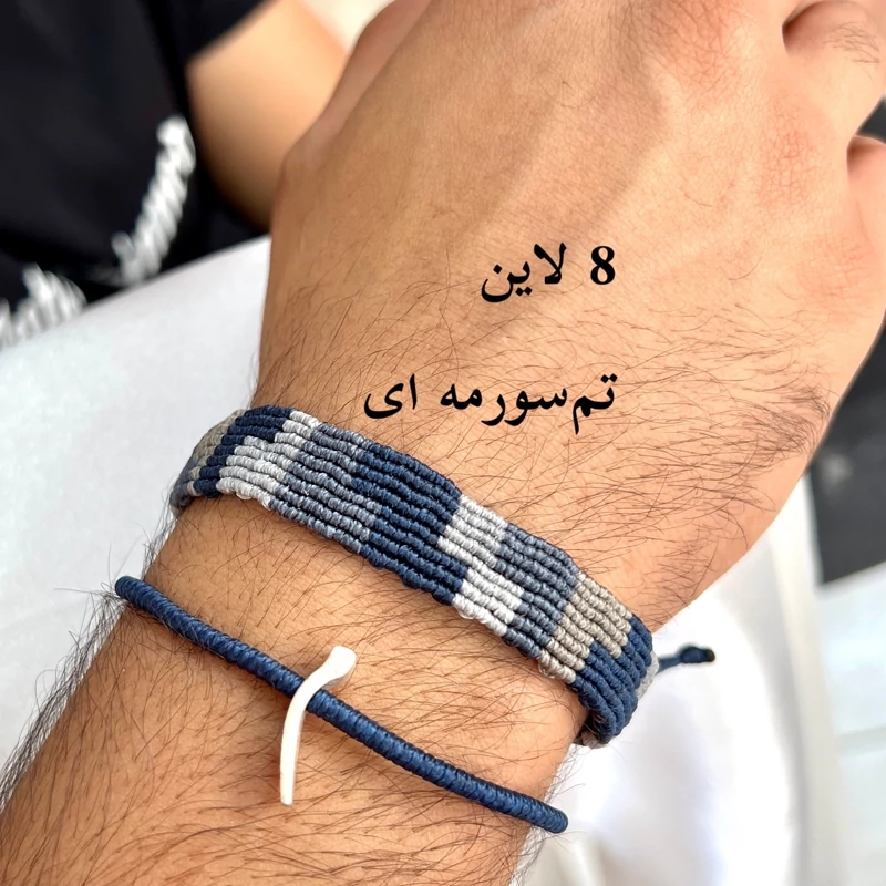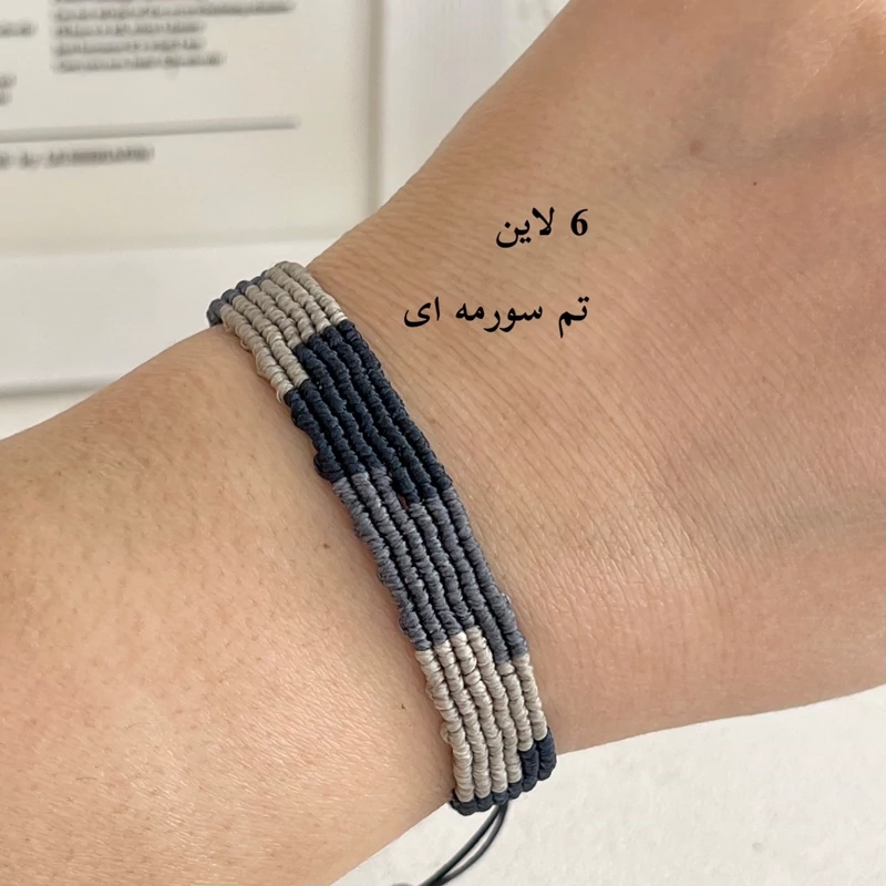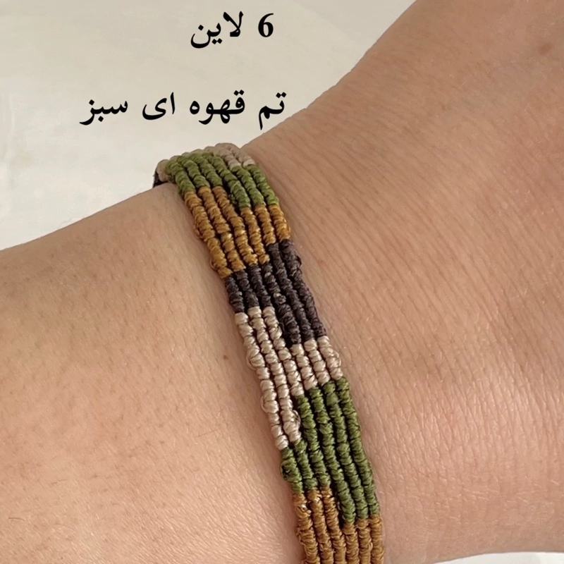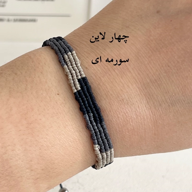 در این مدل دستبند چند رنگ مختلف کنار هم بافته میشن و یک ترکیب منظم و هنری میسازن که هم سادهست و هم خاص.