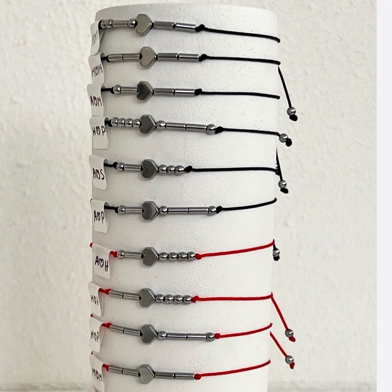 ✅دستبندهای حدید با کد مورس حروف اول اسم دو نفره جداشده با قلب حدید
