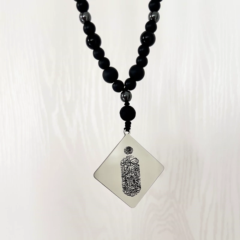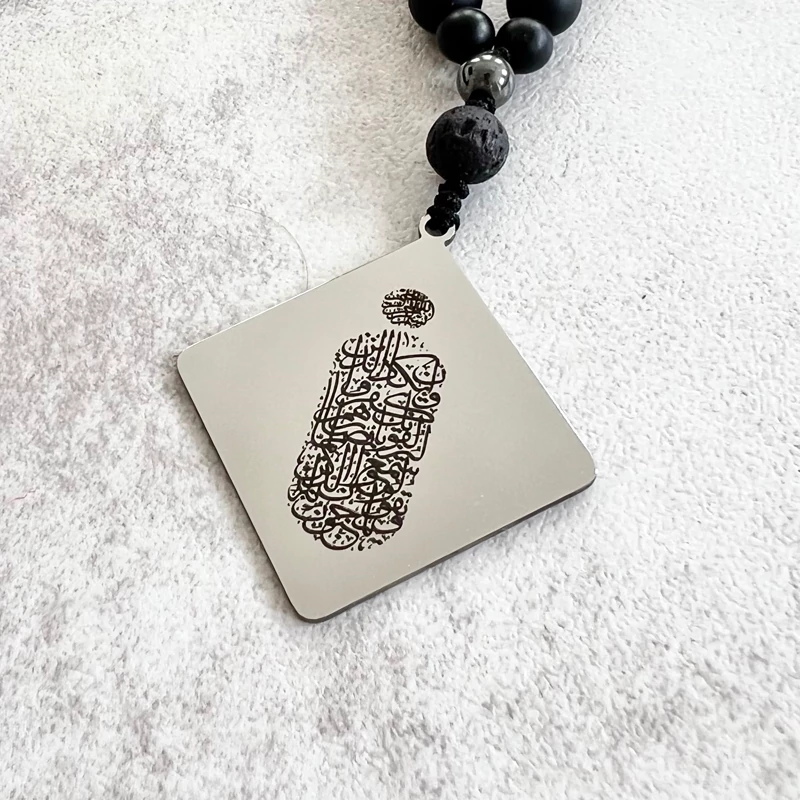 گردنبند استیل سفارشی ساز با حک دعای وانیکاد استیل رنگ ثابت حک عمقی پیاده سازی شده با سنگ های لاوا ، حدید ، اونیکس