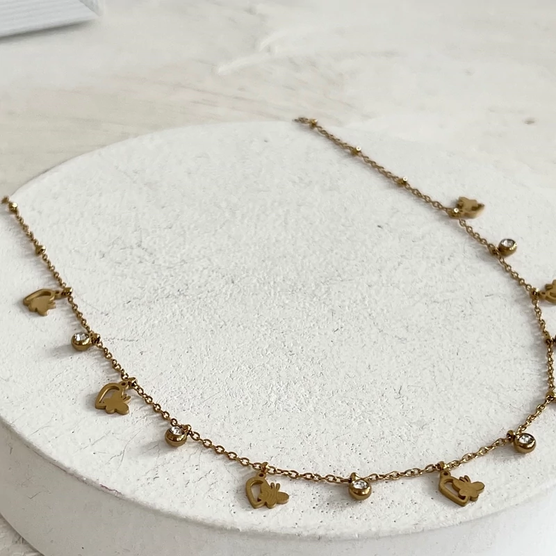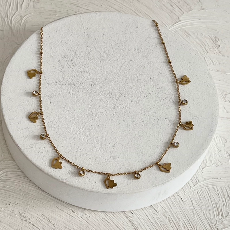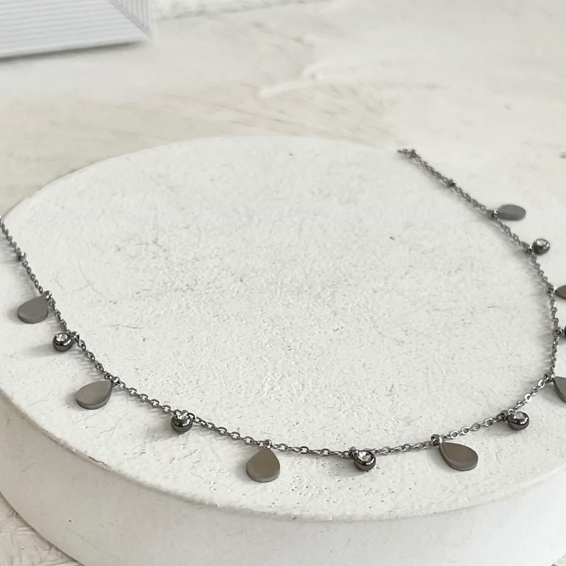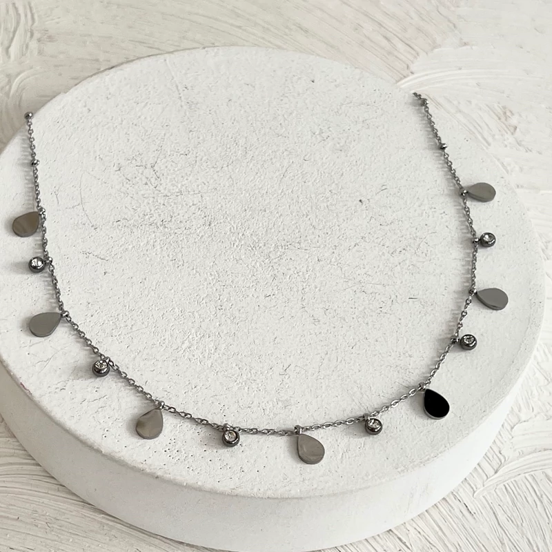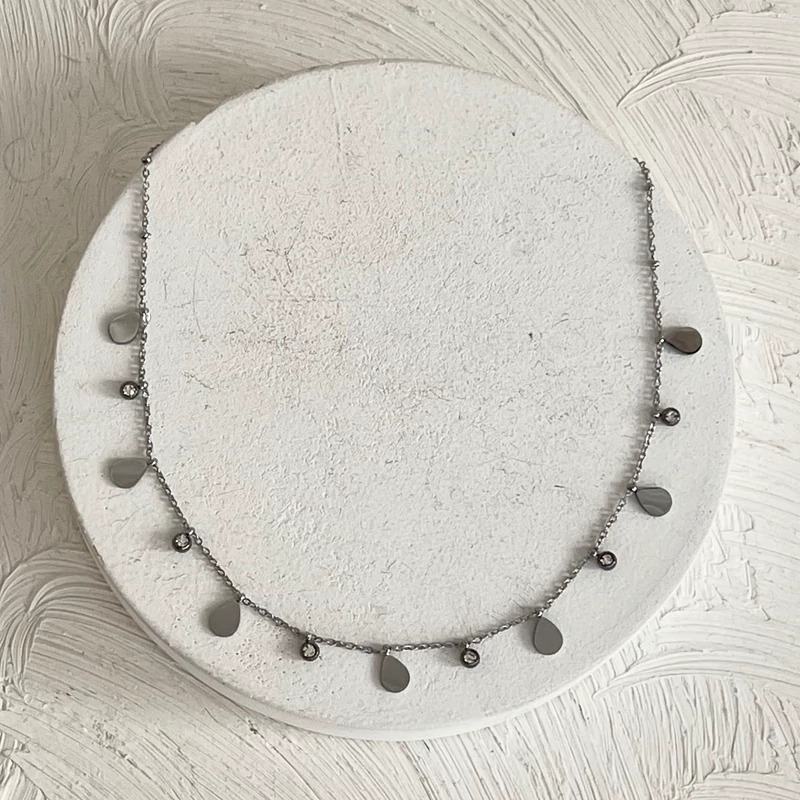 گردنبند های اویز دار با پلاک های مینیمال و نگین در دورنگ طلایی و نقره ای کیفیت بالا و رنگ ثابت جنس استیل