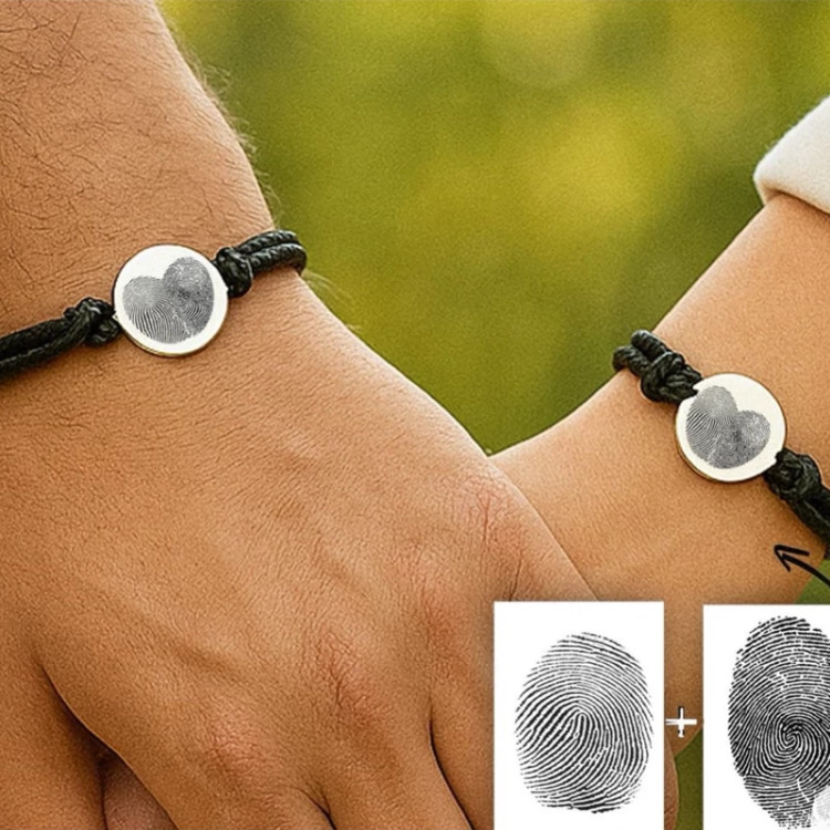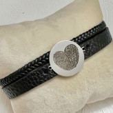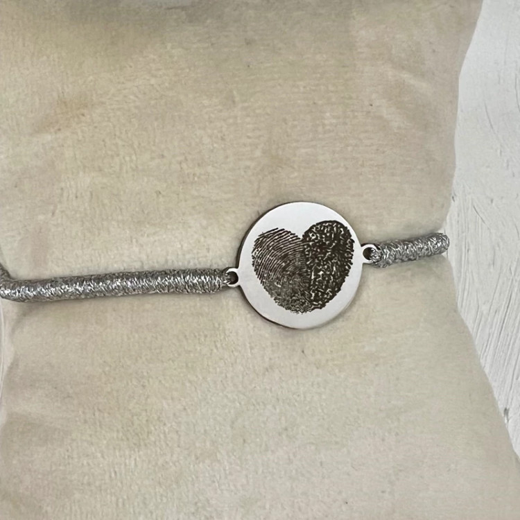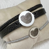 دستبند حک اثر انگشت دونفره قلب استیل با بافت یا چرم