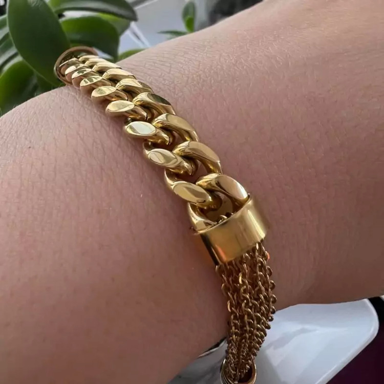 دستبند زنجیری ترکیبی کارتیه طرح طلا