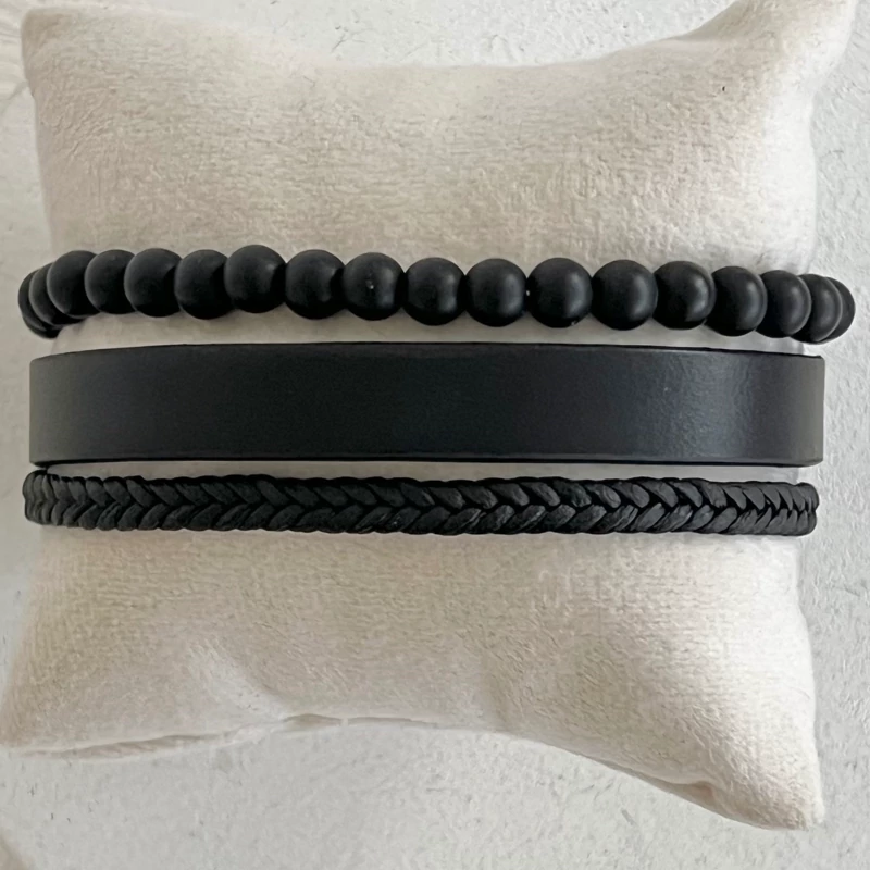 دستبندهای چرم در سه لاین یک لاین چرم یک لاین مهره اونیکس یک لاین چرم ساده با کیفیت کیفیت درجه یک قفل استیل کیفیت بالا