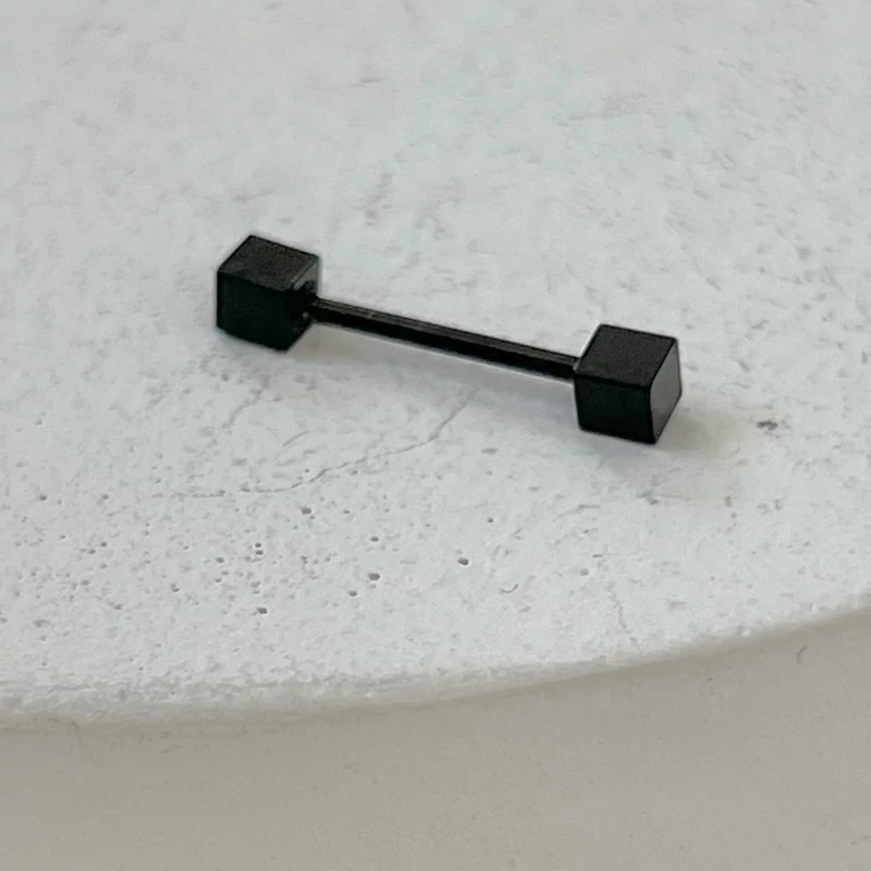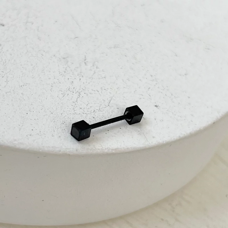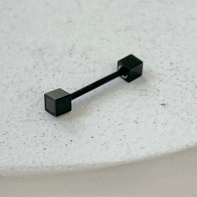 پیرسینگ اسپورت مردانه و زنانه مناسب گوش مکعبی سیاه رنگ ویژگی های محصول در عکس های غرفه مشخص است