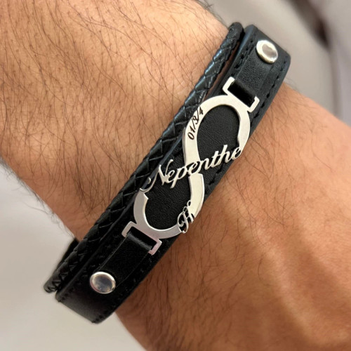 دستبند چرم دولاین با پلاک فوراور و برش اسم و تاریخ