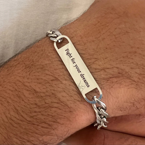 دستبند استیل با پلاک استیل متن یا کلمه ی سفارشی