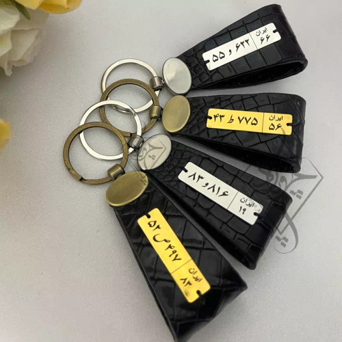 سرکلیدی چرم طبیعی دست ساز با پلاک استیل سفارشی