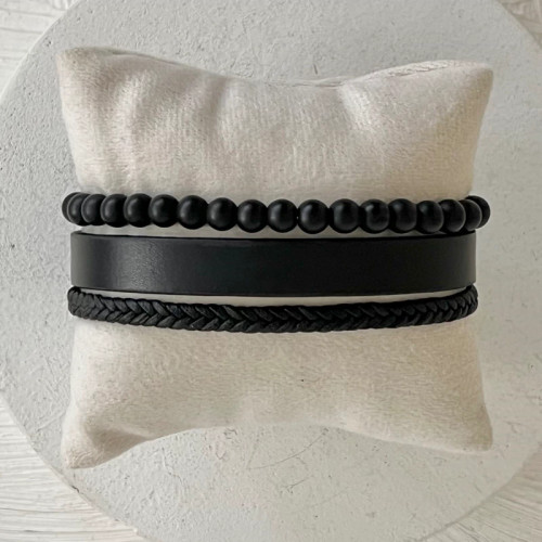 دستبند چرم سه لاین مهره و گیس باف