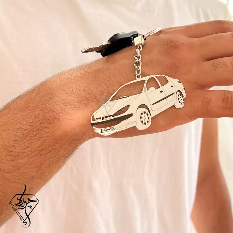 جاکلیدی استیل طرح ماشین با ماشین و پلاک دلخواه