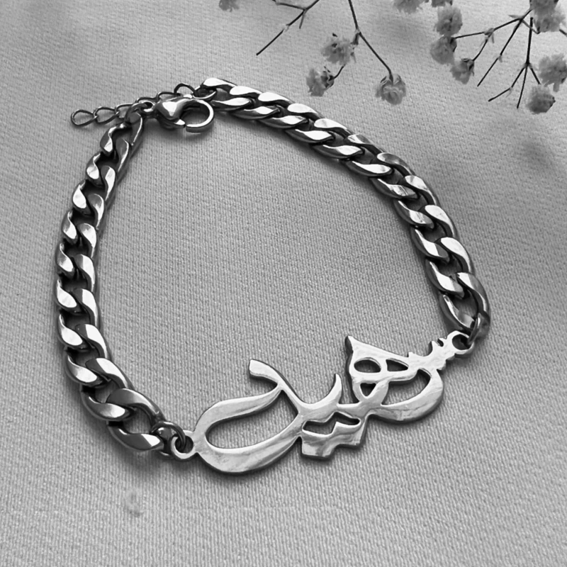 دستبند استیل با پلاک استیل متن یا کلمه ی سفارشی