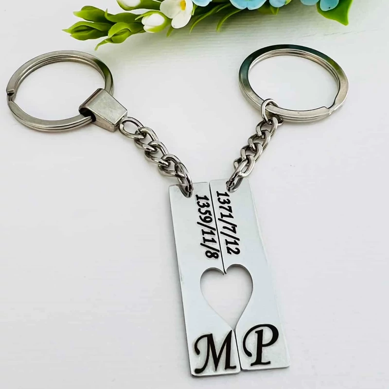 جاکلیدی ست استیل قلب با حک متن و اسم دلخواه
