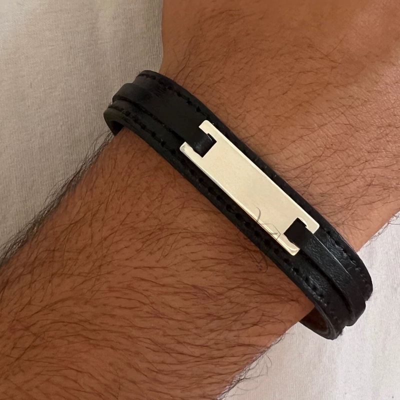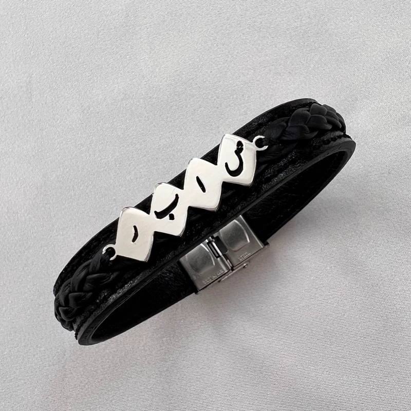 دستبند چرم دولاین با پلاک اسم دلخواه