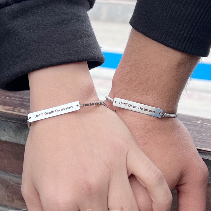 دستبند ست زوج فانتزی استیل با قابلیت حک