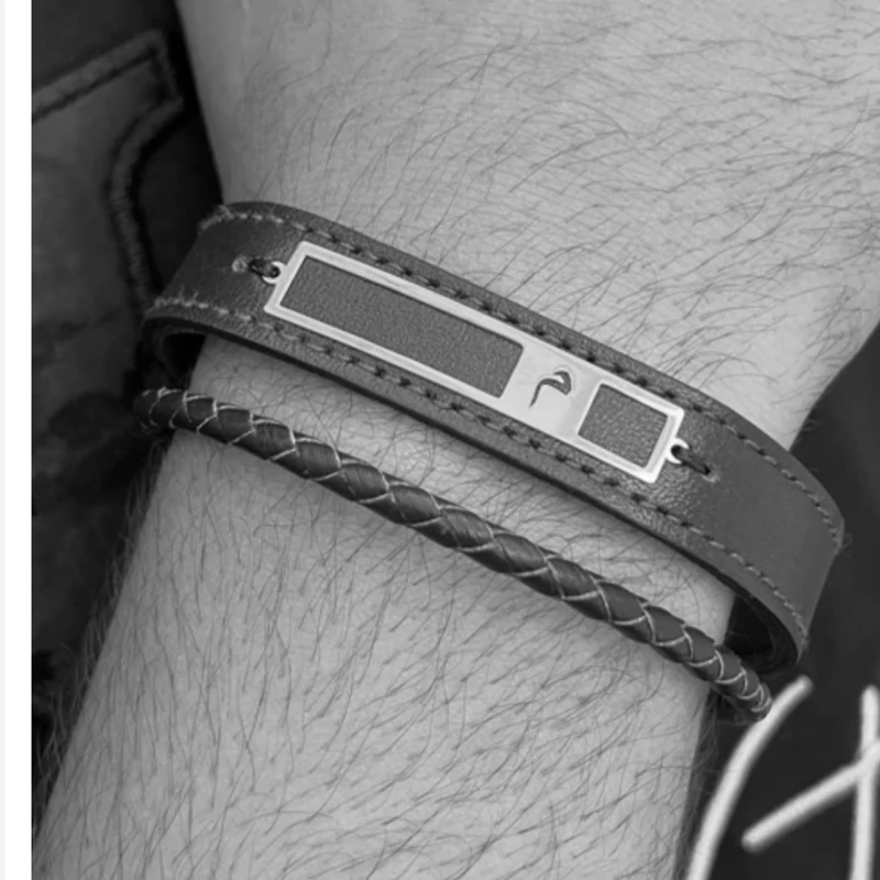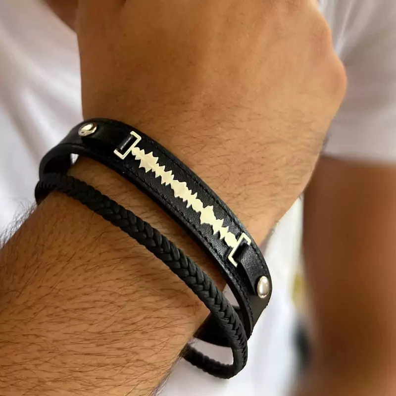 دستبند چرم گویا با پلاک استیل قابلیت پخش ویس و فیلم